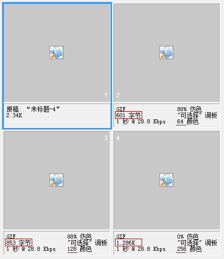 根據這些選項,我們再看看更多的Gif格式下多色階的效果和文件大小對比。