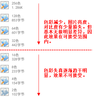 經對比可知,其實對于此圖片而言,用32色來輸出也是可以接受的。