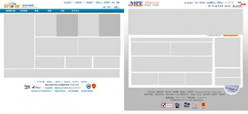 支付寶和財(cái)付通的目標(biāo)訴求及功能需求是基本一致的,我們來(lái)看看他們的首頁(yè)設(shè)計(jì),分別有什么不同?