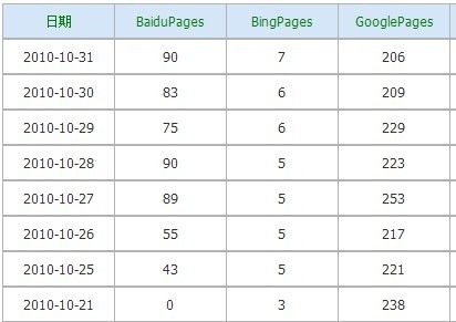 首頁被收錄以后,興奮一段時(shí)間,然后繼續(xù)枯燥的完成每日必須完成的任務(wù),還是圍繞原創(chuàng)文章,外部鏈接,友情鏈接,堅(jiān)持做了一個(gè)月零6天,在10月25日的時(shí)候,百度開始收錄我的內(nèi)頁。